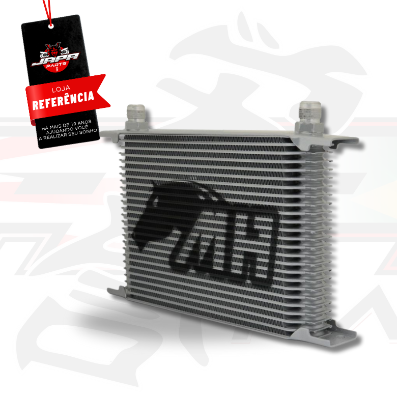 Entrada e Saída 10AN Macho Cônico cada uma posicionada em uma lateral do Radiador de Óleo.